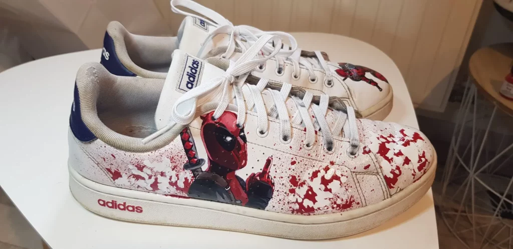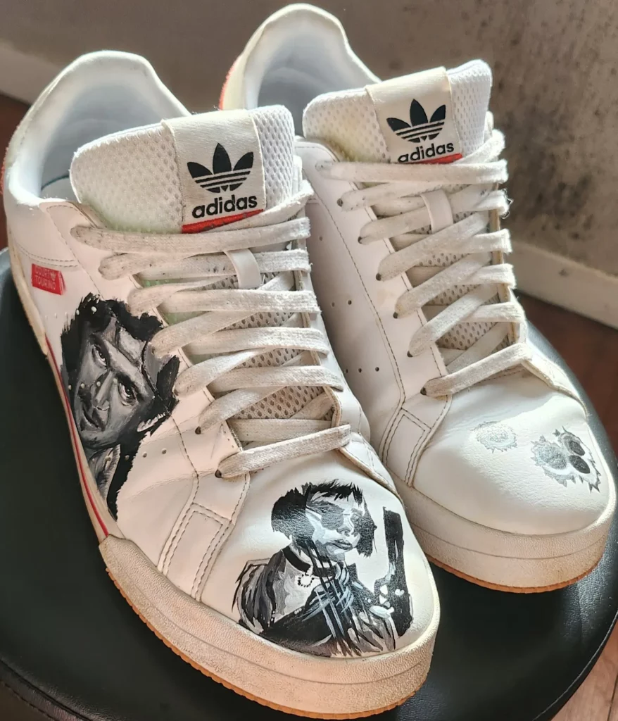 Chaque chaussure personnalisée est peinte à la main avec précision. Cette approche artisanale permet d’obtenir un rendu détaillé et authentique, impossible à reproduire industriellement.